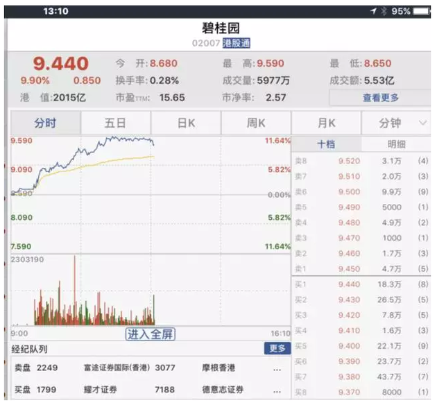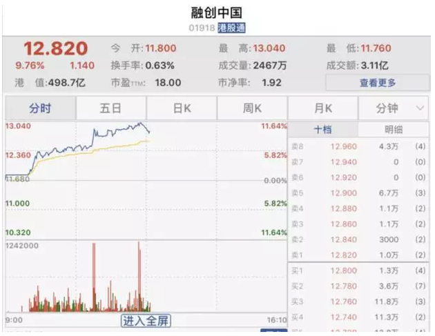 其他內(nèi)房股也不約而同地上漲,碧桂園、融創(chuàng)中國(guó)一度漲超10%。