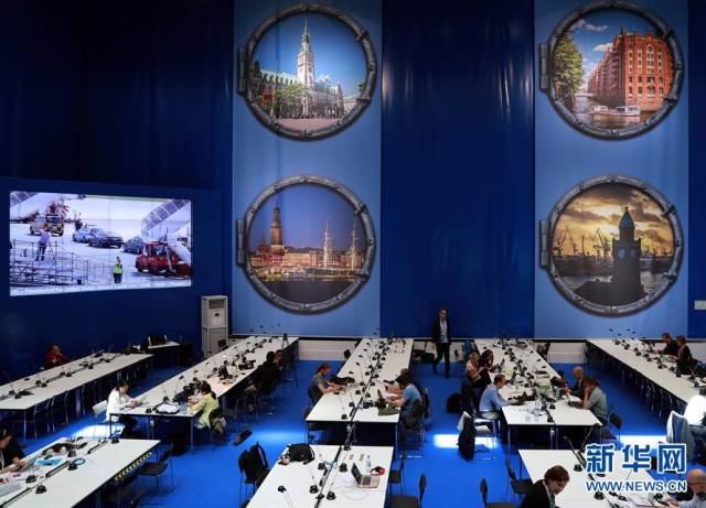 這是7月6日在德國漢堡拍攝的G20領導人峰會國際新聞中心一景。新華社記者羅歡歡攝