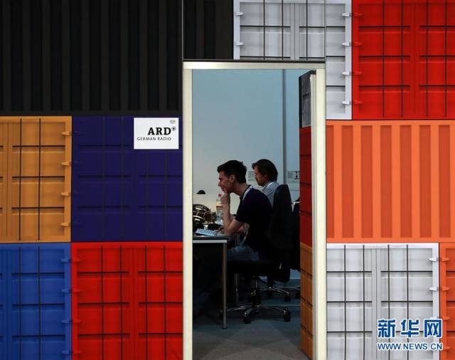 7月6日,在德國漢堡,記者在G20領導人峰會國際新聞中心一個集裝箱造型的房間內工作。 新華社記者羅歡歡攝