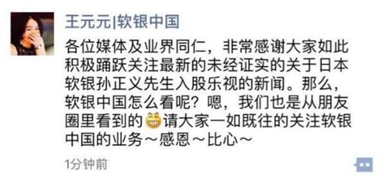 隨后,樂視方面也做出回應(yīng),稱孫正義投資的新聞不實(shí),稍后會(huì)立即澄清。