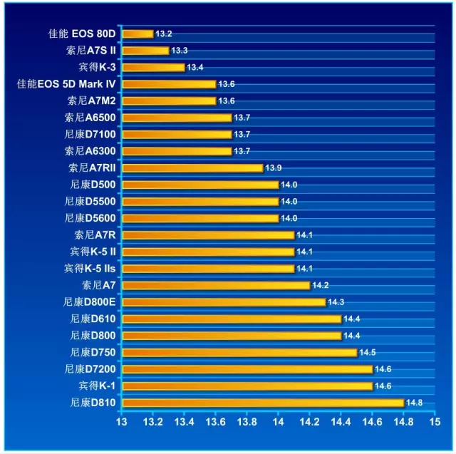 現在佳能、尼康、索尼已經是三足鼎立。索尼憑借自己在感光元件上的優勢,應該說在寬容度上更有發言權,談寬容度怎么少了索尼呢?這也是上周文章留言最多的。下面我們通過一張表來看看當前主流相機的排行榜。