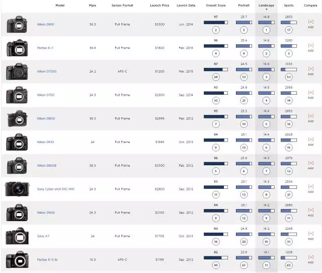 當然了,這個數據也僅僅作為參考,并沒有排除鏡頭的因素在里面,而且是縮圖到同樣大小后的得分。在業界,還有一個叫做senscore網站也干了同樣一件事。從最終的排名來看,差異并不大。