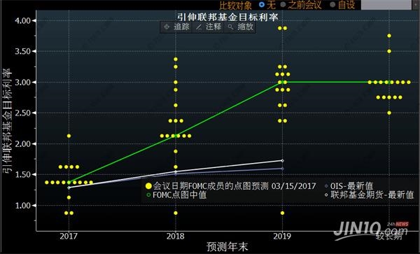 美聯(lián)儲上一次更新點陣圖是在3月份會議,聯(lián)邦基金利率中值顯示今年共將加息3次,其中有三名聯(lián)儲官員的預(yù)期少于3次。如果本周其他官員也下調(diào)利率中值預(yù)期,將為美聯(lián)儲推進(jìn)政策緊縮的信心帶來質(zhì)疑。不過,市場人士認(rèn)為,盡管至少有部分FOMC成員會下調(diào)預(yù)期,但2017年利率中值料將保持不變。