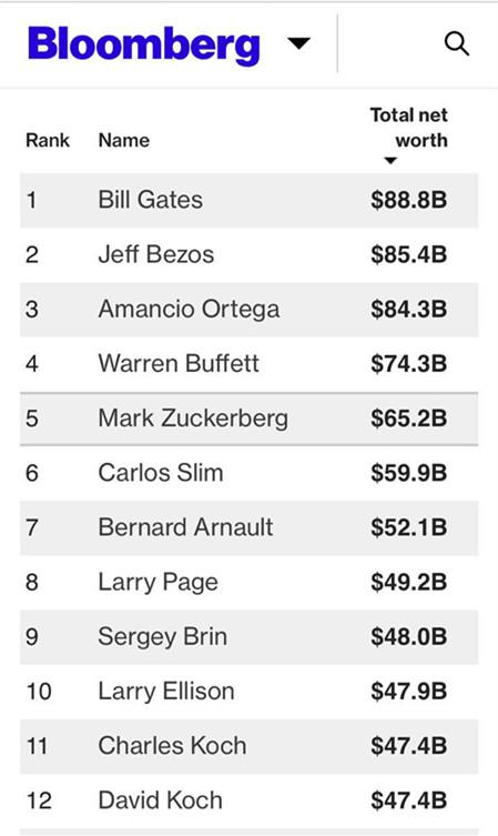 《福布斯》即時(shí)富豪排行榜的數(shù)據(jù)則略有不同。該榜單的數(shù)據(jù)顯示,按照上周五的收盤(pán)價(jià)計(jì)算,貝佐斯個(gè)人身家為849億美元,蓋茨身家為885億美元。不過(guò)兩人之間的財(cái)富差距與彭博億萬(wàn)富豪指數(shù)提供的數(shù)據(jù)所差無(wú)幾。