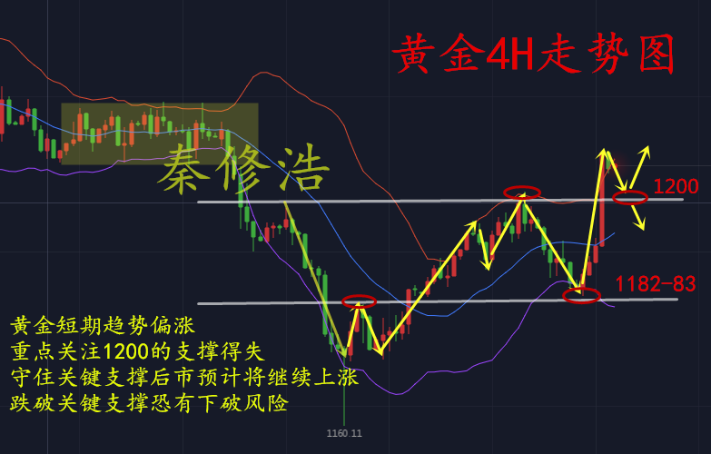 建議回調(diào)1200附近做多,止損4美金,目標(biāo)看1212-1210一線,