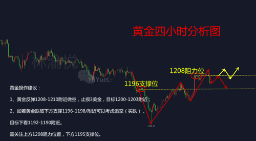 2、如若黃金跌破下方支撐1196-1198/附近可以考慮追空(買跌),目標下看1192-1190附近。